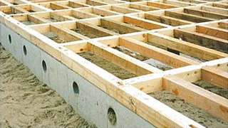 97mm角の根太を45cm間隔で入れて構造用合板12mmを釘打ちします。