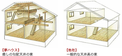夢ハウスの癒し空間は、体積が一般住宅の1.5倍!
