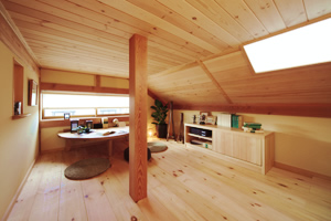 郷の家は、小屋裏スペースを利用して「隠れ家」気分のロフトスペースが可能。書斎として、趣味の部屋として、納戸として、家族みんなのユティリティースペースが作れます!!